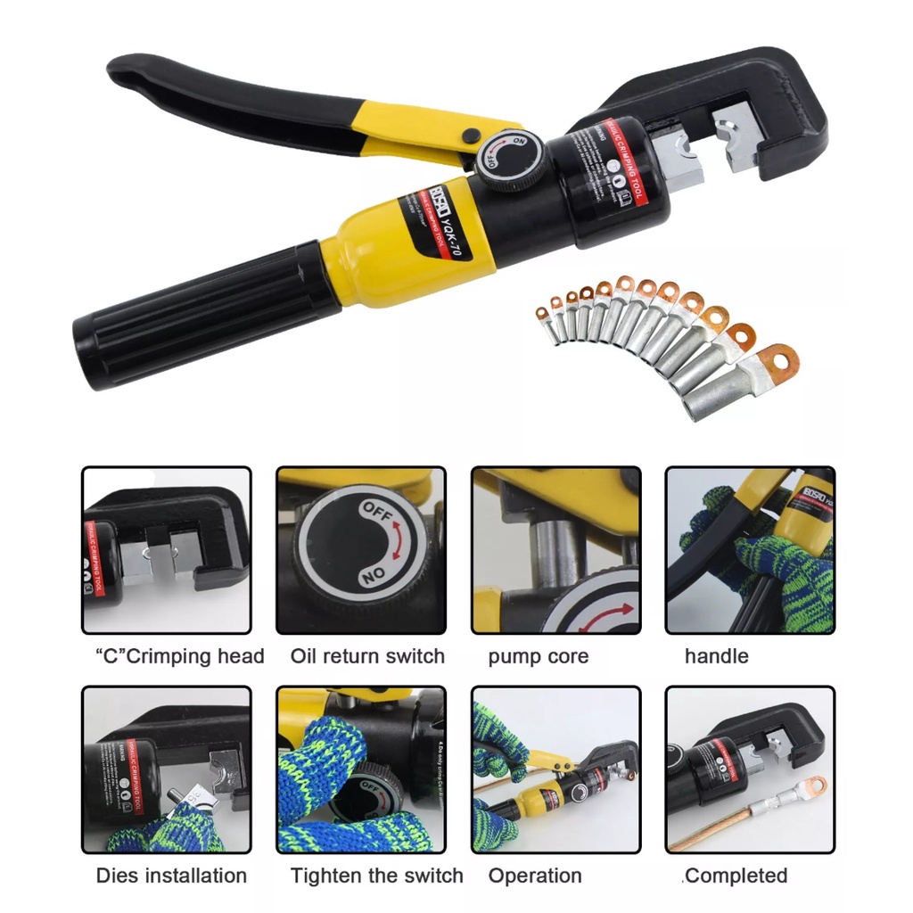 คีมย้ำหางปลา ไฮดรอลิก รุ่น YQK-70 ขนาด 4-70 ตร.มม. เครื่องมือพิเศษสำหรับงานไฟฟ้า แข็งแรง ทนทาน รุ่นใหม่ 2023