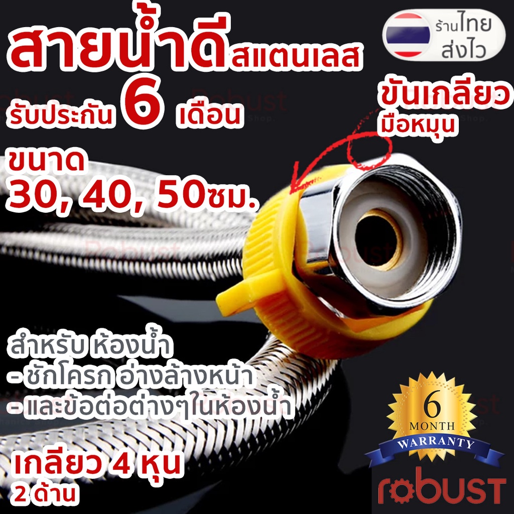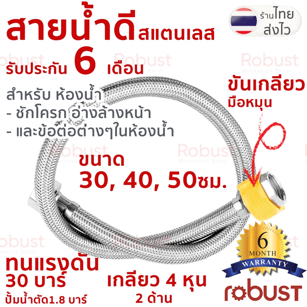 สายน้ำดีสแตนเลส ทนแรงดันสูง 30 บาร์ พร้อมที่บิด รับประกัน 6 เดือน ใช้กับน้ำร้อนได้ ขนาด 30, 40, 50 เซ็นติเมตร