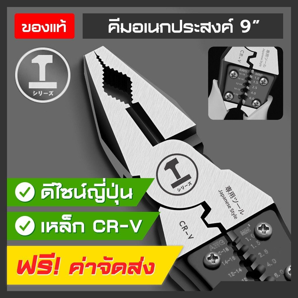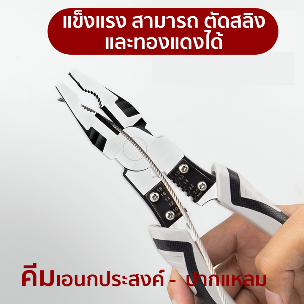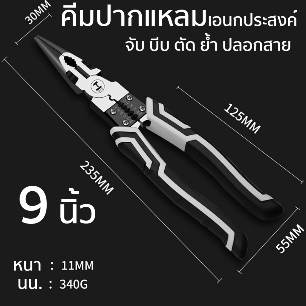 คีมอเนกประสงค์ 8.5 นิ้ว / ปากแหลม 9 นิ้ว สำหรับช่าง เหล็ก CR-V บิด งอ คีมตัดสายไฟ คีมย้ำหางปลา คีมตัดเหล็ก ขันประแจ ตัวเดียวครบ