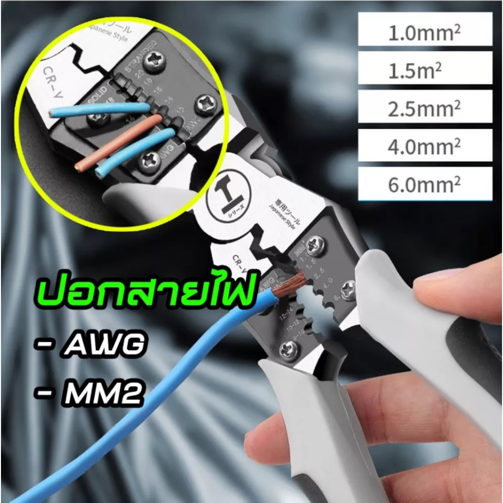 8. สามารถปอกสายไฟ AWG และ MM2 ขนาด 1-6 mm.