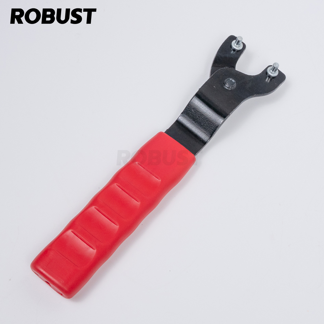 ประแจขันแหวนประกับล็อคใบเจียร ROBUST รุ่นใหม่ เป็นเครื่องมือสำหรับถอด–ขันแหวนประกับหินเจียรที่ออกแบบมาให้ใช้งานง่าย แข็งแรง และจับถนัดมือ ด้วยด้ามยางขนาดใหญ่ เขี้ยวเหล็กคุณภาพสูง ไม่บิดงอ เบี้ยว หรือคดงอ ระยะปรับปากตั้งแต่ 12-40 มม. รองรับหินเจียรหลายรุ่น เหมาะสำหรับงานช่างที่ต้องการความรวดเร็วและแม่นยำ