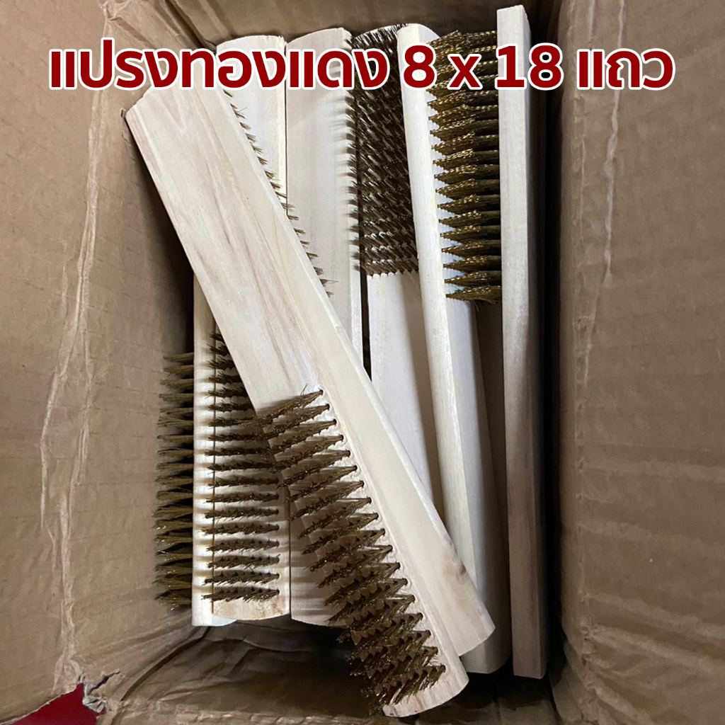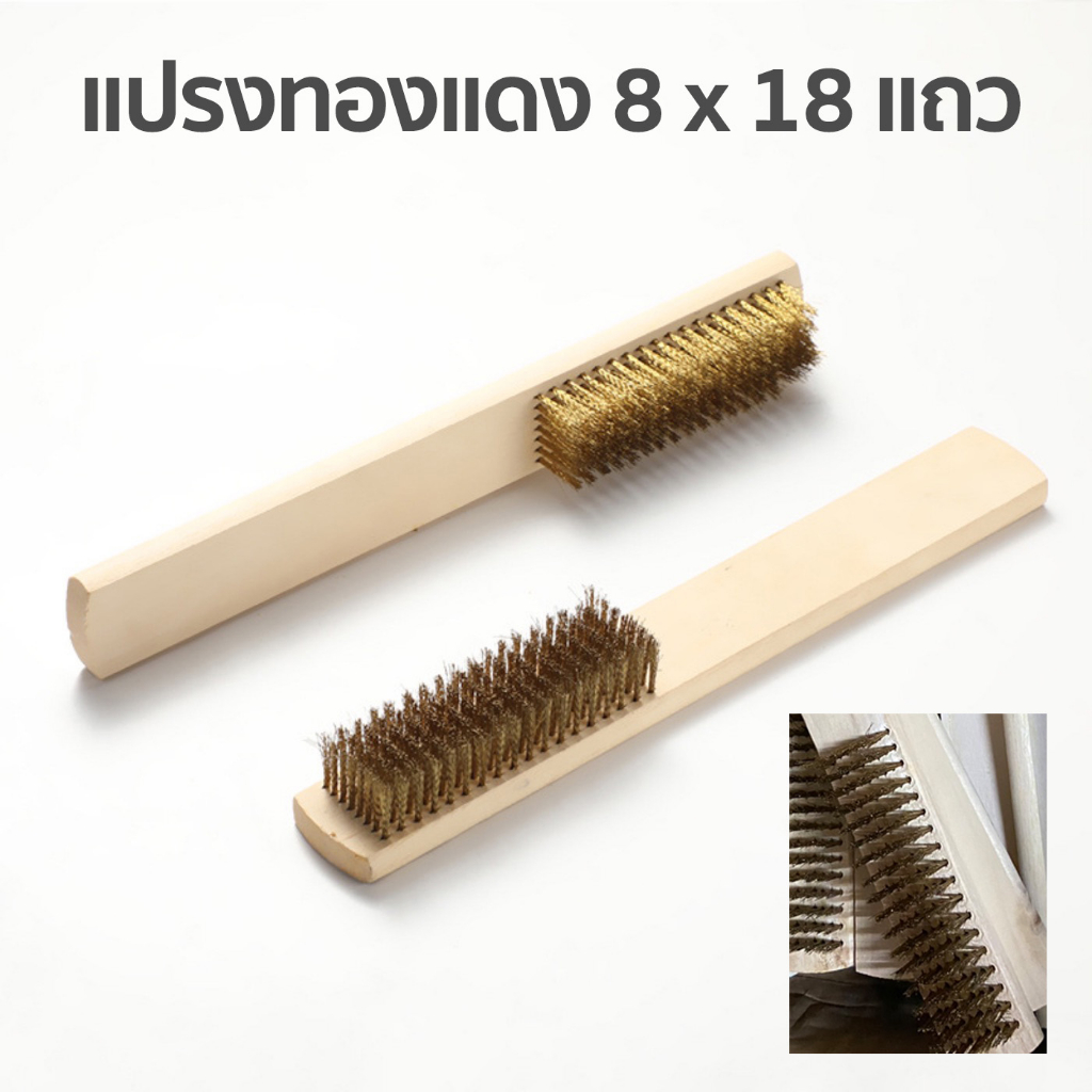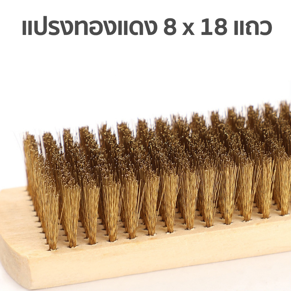 แปรงลวดทองแดง ด้ามไม้สี่เหลี่ยม ขนาด 8×18 แถว สำหรับทำความสะอาด